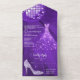 Disco Ball, Stiletto, Ball Gown Purple Quinceañera All In One Invitation