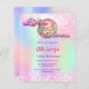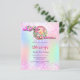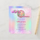 A girly and feminine 18th (or any age) party invitation. A holographic background in pink, purple and mint green. Decorated with a colourful disco ball and pink confetti. Text: Let's Dance. Personalise and add a name and party details. The name is written with a hand lettered style script.