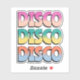Colourful grunge retro style "Disco Disco Disco" text design with striped letters decoration