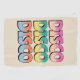 Colourful grunge retro style "Disco Disco Disco" text design with striped letters decoration