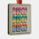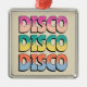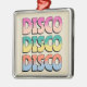 Colourful grunge retro style "Disco Disco Disco" text design with striped letters decoration