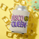 Colourful retro style "Disco Queen" text design with black and yellow disco ball decoration