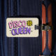 Colourful retro style "Disco Queen" text design with black and yellow disco ball decoration