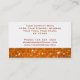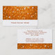 Business card with a glamourous stylised "disco mirror tile look" printed pattern in shades of orange and white, and dark orange text on a white background.. Can be used as a background for your own text, images and ideas. Please note this is a printed digital art image, it does not shine or contain real mirrors or glitter.