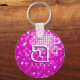 Keychain with a fun and funky stylised "disco mirror tile look" printed pattern and the initial letter of your choice in shades of pink and white. Can be used as a background for your own text, images and ideas. Please note this is a printed digital art image, it does not shine or contain real mirrors or glitter.