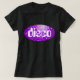 T-shirt with a fun and funky stylised "disco mirror tile look" printed pattern in shades of purple and white, and 'disco' written in a retro style text. Can be used as a background for your own text, images and ideas. Available in all style options. Please note this is a printed digital art image, it does not shine or contain real mirrors or glitter.