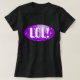 T-shirt with a fun and funky stylised "disco mirror tile look" printed pattern in shades of purple and white, and 'LOL!' written in a retro style text. Can be used as a background for your own text, images and ideas. Available in all style options. Please note this is a printed digital art image, it does not shine or contain real mirrors or glitter.