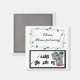 Dishwashing magnet that has "Clean! Please out away! and Do not use! Dirty!" The clean side has a vine around it, and the dirty side has a border around it and a stack of dirty dishes.
