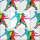 A primary colored graphic of a backhand disk golf drive in action. Version 2.