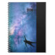 Silhouette of a disk golfer putting into the chains under a star-filled evening sky.