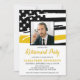 Thin Gold Line Dispatcher Retirement Invitations. Celebrate years of dedicated service and invite friends and family to your police dispatcher retirement party with this Thin Gold Line Flag Dispatcher Retirement Invitation. - USA American flag design in Dispatcher Flag colours, modern black and gold design. This dispatcher retirement invitation is perfect for all police dispatcher or fire dispatcher, 911 dispatchers and emergency 911 operator telecommunications . See our collection for matching dispatcher retirement gifts,party favours, and supplies. COPYRIGHT © 2021 Judy Burrows, Black Dog Art - All Rights Reserved. Dispatcher Retirement Personalised Photo Gold Flag Invitation