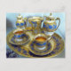 A gold and blue tray set for coffee with matching ornate gold and blue cups & saucers, coffee & milk jugs & accessories