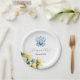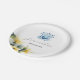 These elegant disposable bridal shower plates feature a blue monogram crest with yellow hibiscus flowers. Use the template fields to add your custom text. Order small quantities of bulk wedding paper plates. To see more decorative tableware like this visit www.zazzle.com/dotellabelle