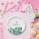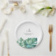 Enhance your bridal shower with these elegant disposable plates, featuring tropical monstera palm leaves. Personalise them effortlessly using the provided template fields to add your custom text. Order in small quantities or bulk for your wedding or bridal shower. Explore more decorative tableware like this at www.zazzle.com/dotellabelle.
