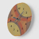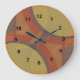 Dissolution wall clocks with black numbers. Dissolution is an abstract design created by Vexenwraith and consists of red, orange, olive and grey circles and rectangles.