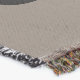 A quality printed throw has its advantages. This is a much finer weave throw than its loopier cousins, and though lighter, it is worth the investment for custom room accessorizing. The back is much prettier than the typical brown, and the fringe on the long sides very vivid, the selvage nicely done. Before photographing, I washed the throw in cold water, delicate, with a thicker woven throw the same size. On tumble dry low, this throw was dry in half the time as the other. This is a very practical quality if you use throws for furniture covers or to wrap up in frequently. The sleekness of the fabric makes it a great layer for accenting or protecting without the feeling of sitting on too much stuff. Perfect for napping or when you feel a light chill coming on. The color printing is beautiful and on this fabric, matched the design and color of my Photoshop image. This is an advantage for blending room fabrics and colors. The fringe on the short sides prints the colors from the design image and therefore varies from the side fringe. I streaked a white fractal line through the plaid pattern to give the illusion of weaving. This printed as crisp as an illusory thread, and put some white in the short side fringe, showing another advantage of print vs loomed- for artistic purposes, line lines, detail, and color integrity can be planned and preserved. My loomed throws have color limitations and more of a needlepoint texture. Print throws reproduce an exact image. The throw felt a little stiff straight out of the package, but this went away in the first delicate wash. Of course I searched the wash water for ink or bleeding and there was none.