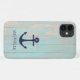 Distressed tropical beach blue faux wood with navy blue nautical anchor and personalised phone case.