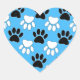 Distressed Black And White Paws On Blue Background Heart Sticker