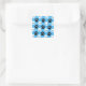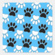 A pattern in black and white of dog paw prints with distressed effects on a blue background.