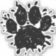 Cute cartoon style dog paw print with paint splash and distressed effect applied to image.