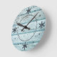 Distressed Blue Beach Wood Starfish Photo Round Clock