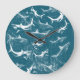 Distressed Blue Shark Pattern Large Clock