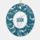 Distressed Blue Shark Pattern Monogram Ceramic Tree Decoration