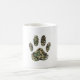A camo dog paw print cartoon style with distressed effect applied to image. Custom coffee mugs.