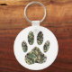 A camo dog paw print cartoon style with distressed effect applied to image. Custom key chains.