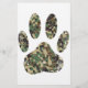 A camo dog paw print cartoon style with distressed effect applied to image.