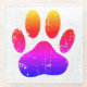 Cartoon dog pawprint in orange, red, pink, blue and purple.. Custom coasters with grunge, distressed effect.
