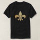 This black t-shirt has a textured, distressed gold fleur de lis design.
