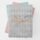 Gift wrap with grunge distressed harlequin pattern in three different colour variations.