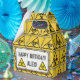 Distressed Biohazard-themed wrapping paper inspired by health and safety warning signs.