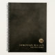 Minimal Modern Luxury Brushed Metallic Gold Monogram Medallion Name Title Custom Text Classic Block Typography Distressed Leather Texture Background Black Chestnut Brown Appointment Book Planner
