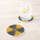 Sandstone coaster with a distressed yellow and grey radiation symbol.