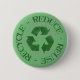 Reduce - Reuse - Recycle - distressed recycling symbol button pin in light and dark green.