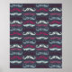 A fun moustache print pattern in a lovely shades of berry,violet, and powder blue.