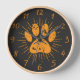 Cute vintage cartoon style dog paw print and sun rays with aged, distressed effect applied to the image. Custom wall clocks for dog lovers. Gift idea.