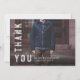 These modern graduate thank you cards feature a full bleed photo of the graduate, with the words "thank you" in distressed grey text. The back has space in the middle to add a personal message.