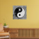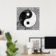Heavily distressed yin yang symbol poster in black, white and a whole lot of grey.