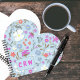 Ditsy Pop Floral Art Monogrammed Heart Shape Notebook