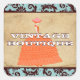 Retro Southern Belle Diva Fashion Sticker Orange Retro Dots Rustic Distressed Background with Victorian Floral Damask Trim.