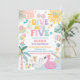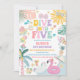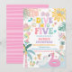 Make a splash with this colorful "Dive Into Five- birthday party invitation, perfect for a summer pool celebration. Featuring playful illustrations of ice cream, popsicles, flamingo floats, palm trees, and beach balls, this cheerful design sets the tone for a fun-filled day. Ideal for childrens pool parties, tropical birthdays, or summer gatherings, this invitation is both vibrant and engaging. Customize with your party details to create a memorable keepsake that guests will love.