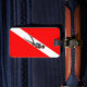 Tag stands out. Easy to find my bag and go. Interesting design. Not just a diver flag. My name and address are clearly shown.
