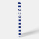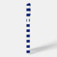 A silver chrome like diver and sharks design on a navy blue stripes decor. A modern nautical gift.