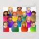 Colourful illustration of a group of diverse men and women gathered together in a meeting. Image available on various gifts and products.