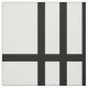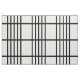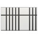 Stylish fabric features a bold geometric pattern with groups of five vertical black stripes divided by horizontal black lines. The black on white design has a classic look and is an original creation.