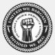 "United we bargain - divided we beg - to form a more perfect union." Seal design with fist centre and round text border, Black and white, on t-shirts, hoodies, cards, gifts.
