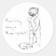 Round sticker with black & white drawing of cherub with "Divine being having a Human experience"